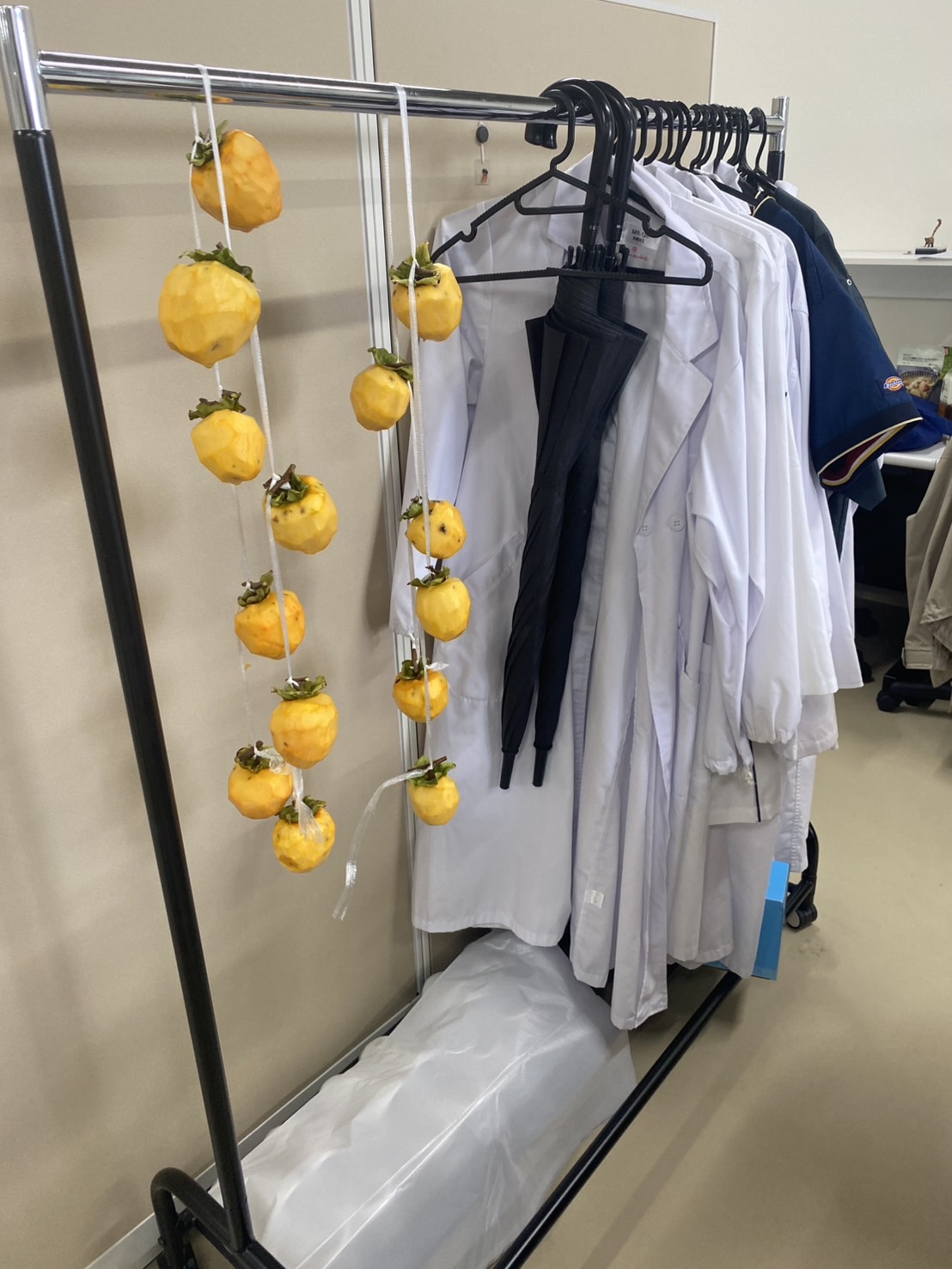さっそく研究室の学生たちがネットのレシピを参考に、干し柿づくりをスタートしました!