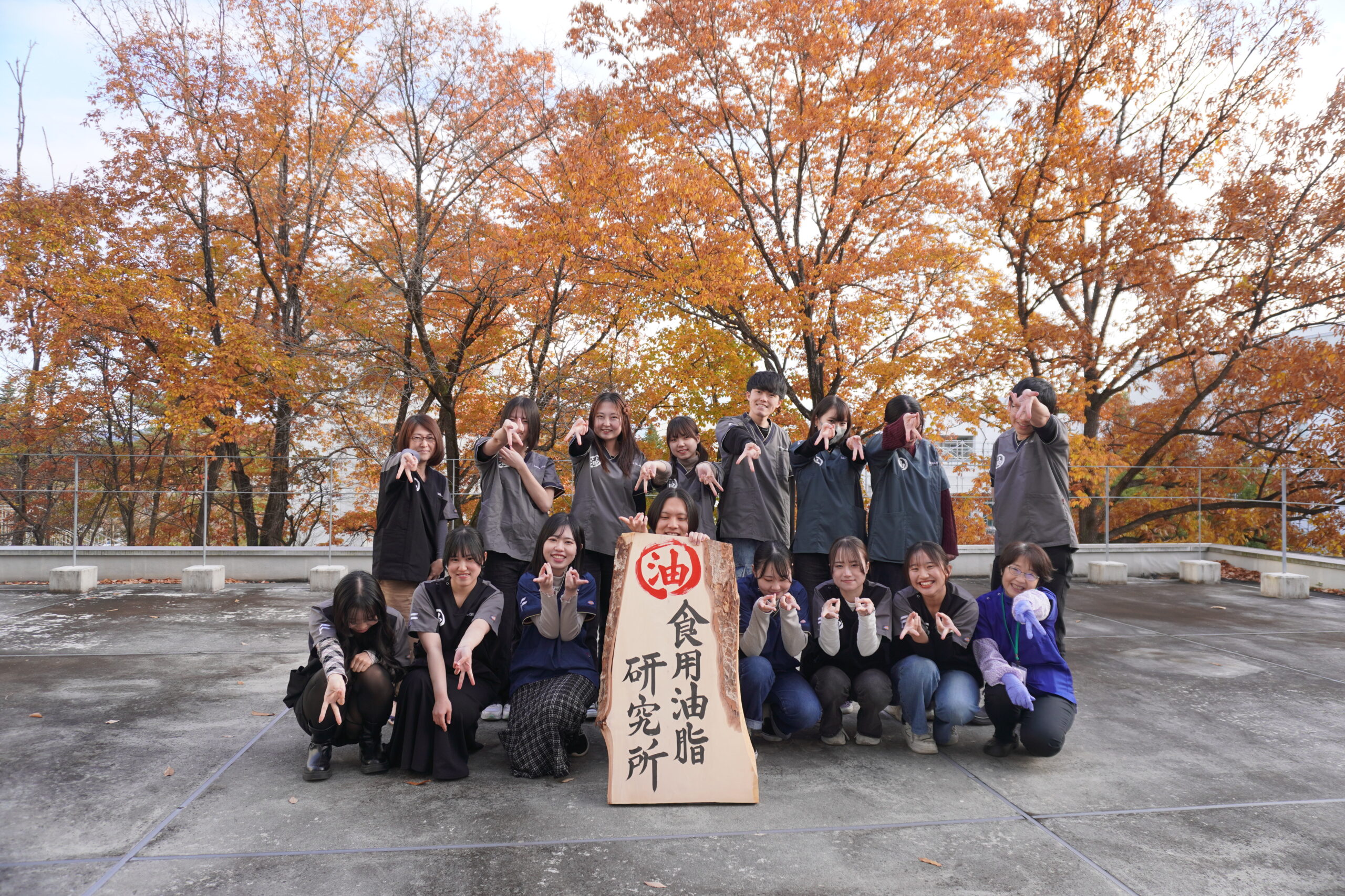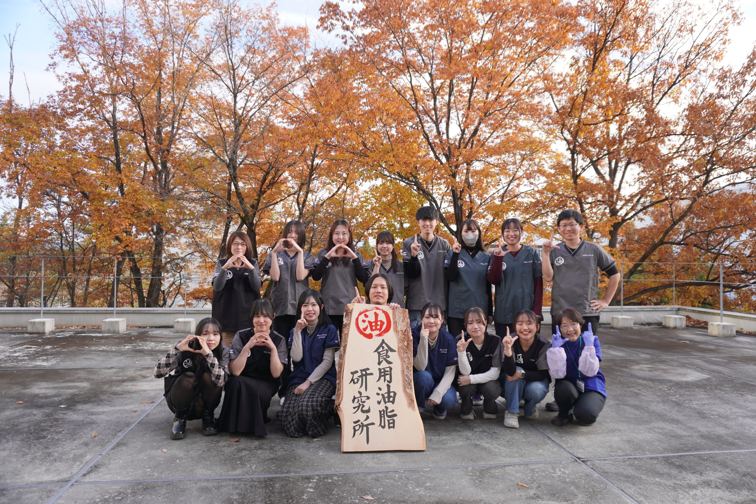 今年の写真は、研究室恒例の OILポーズ に加えて、学生からの提案で ギャルピース も採用!