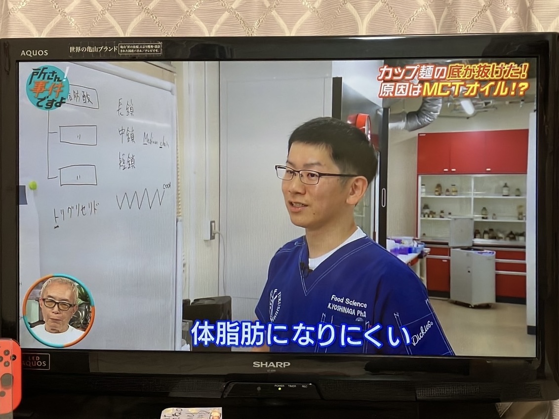 番組内では、MCTオイルがカップ麺の容器を破損する現象について、食品・油脂の科学的観点から解説しました。