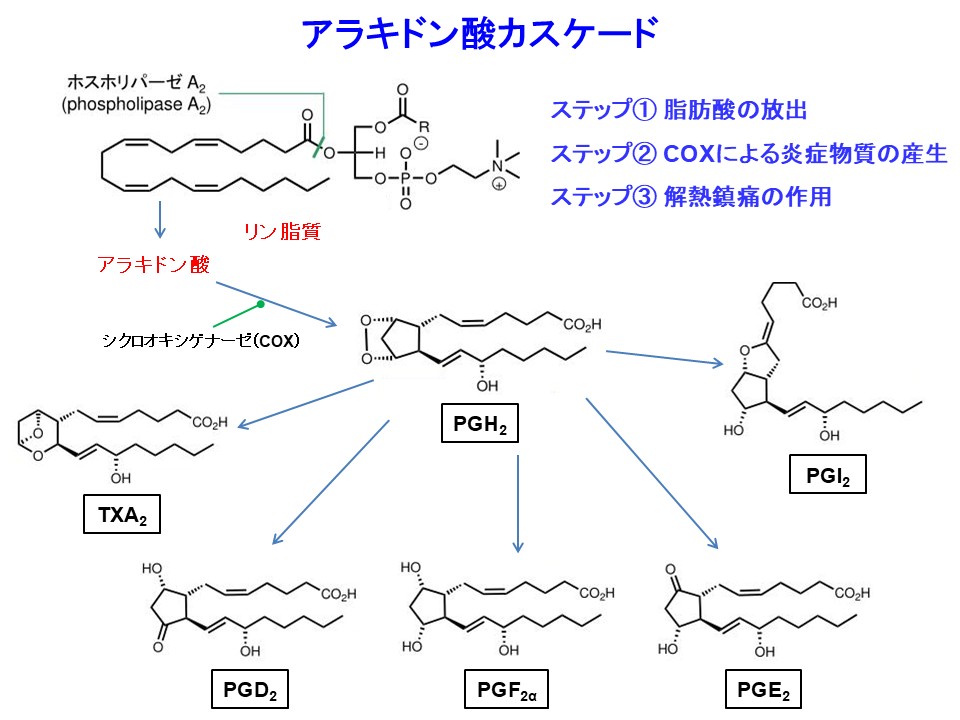 放出されたアラキドン酸は、シクロオキシゲナーゼ(COX) という酵素によって代謝され、